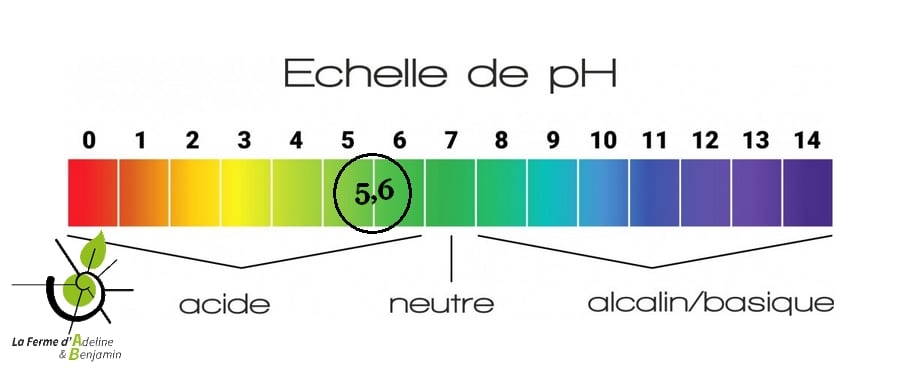 L’échelle de pH nous situe en milieu acide, nous souhaitons apporter du calcaire de façon régulière et non agressive (pas de remonté brutale de pH pour respecter les populations de microorganismes du sol) et se maintenir à une valeur se situant à 6 voir légèrement au dessus.