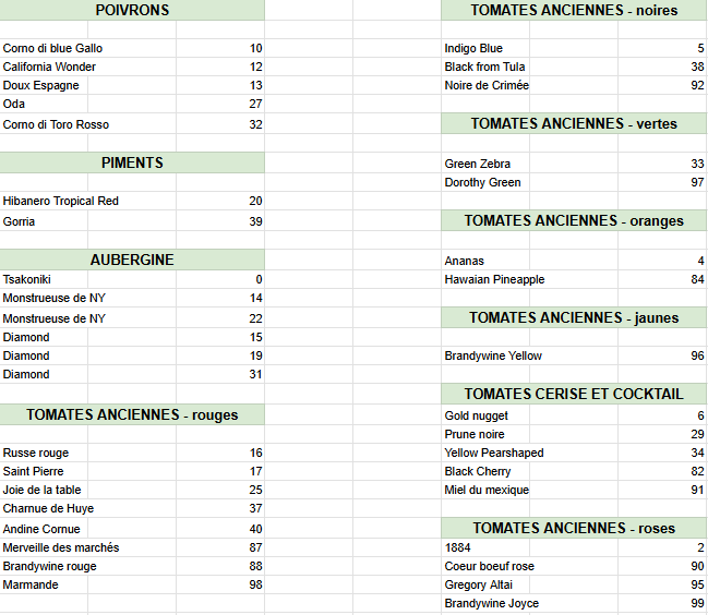 L’ensemble des plants sont produits sur la ferme dans le respect de la certification « agriculture biologique » avec la sélection de semences reproductibles (population) et du terreau biologique.